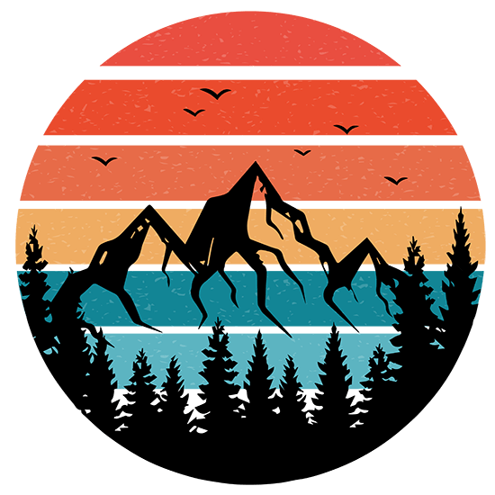 70's Retro Vibe Sunset Forest Mountain Black Version