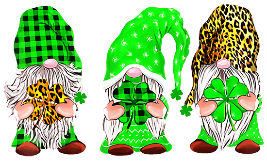 Three Gnomes Holding Four Leaf Clover Shamrock Leopard Plaid St Patricks Day