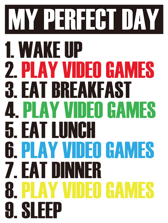 My Perfect Day With Video Games Funny Black Ink for Geek Gamer