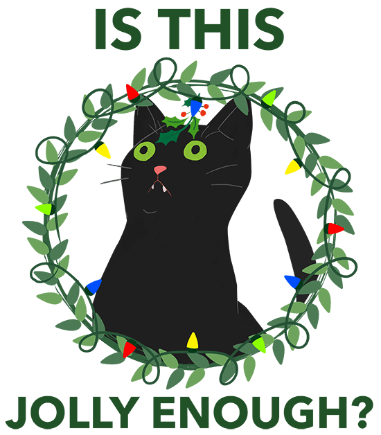 Is This Jolly Enough Black Cat With Christmas Lights Wreath