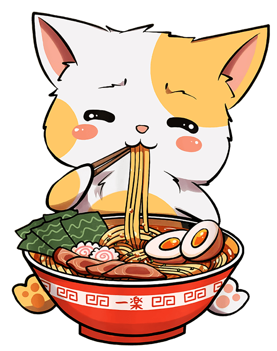 Kawaii Neko Anime Cute Cat Eat Ramen