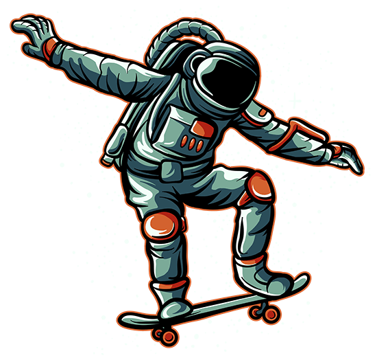 Space Skater Skateboard Tattoo Cool Illustration Black Ink