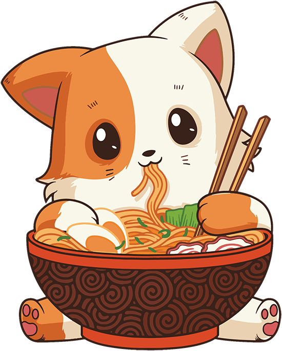 Cute Cat Eating Ramen Anime Otako Manga Japanese Noodles
